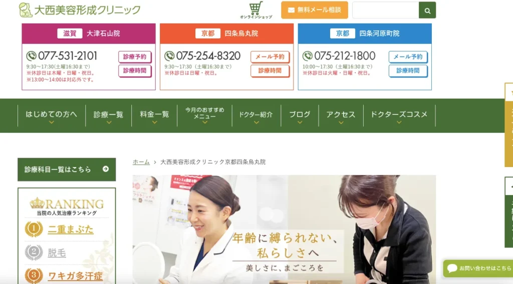 | 最寄駅 | 京都駅ビル院 京都駅 徒歩1分 | 京都院 京都駅 徒歩5分 | 京都院 四条駅 徒歩2分 |