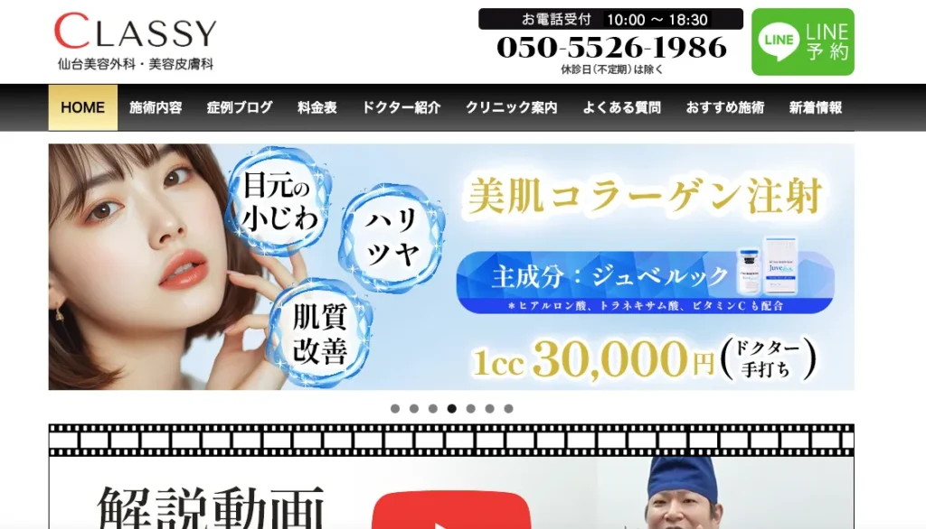 仙台市中心部、JR「仙台駅」西口から徒歩約6分の便利な立地にあるCLASSY 仙台美容外科・美容皮膚科では、肌の乾燥・ハリ不足・毛穴の開きなどに応える「水光注射」を導入しています。