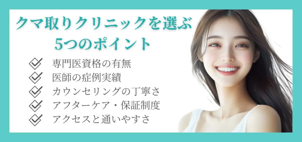 本記事では、浜松エリアでクマ取りを検討中の方に向けて、信頼できるクリニックの選び方や費用、気になるデメリットまで詳しく解説いたしました。