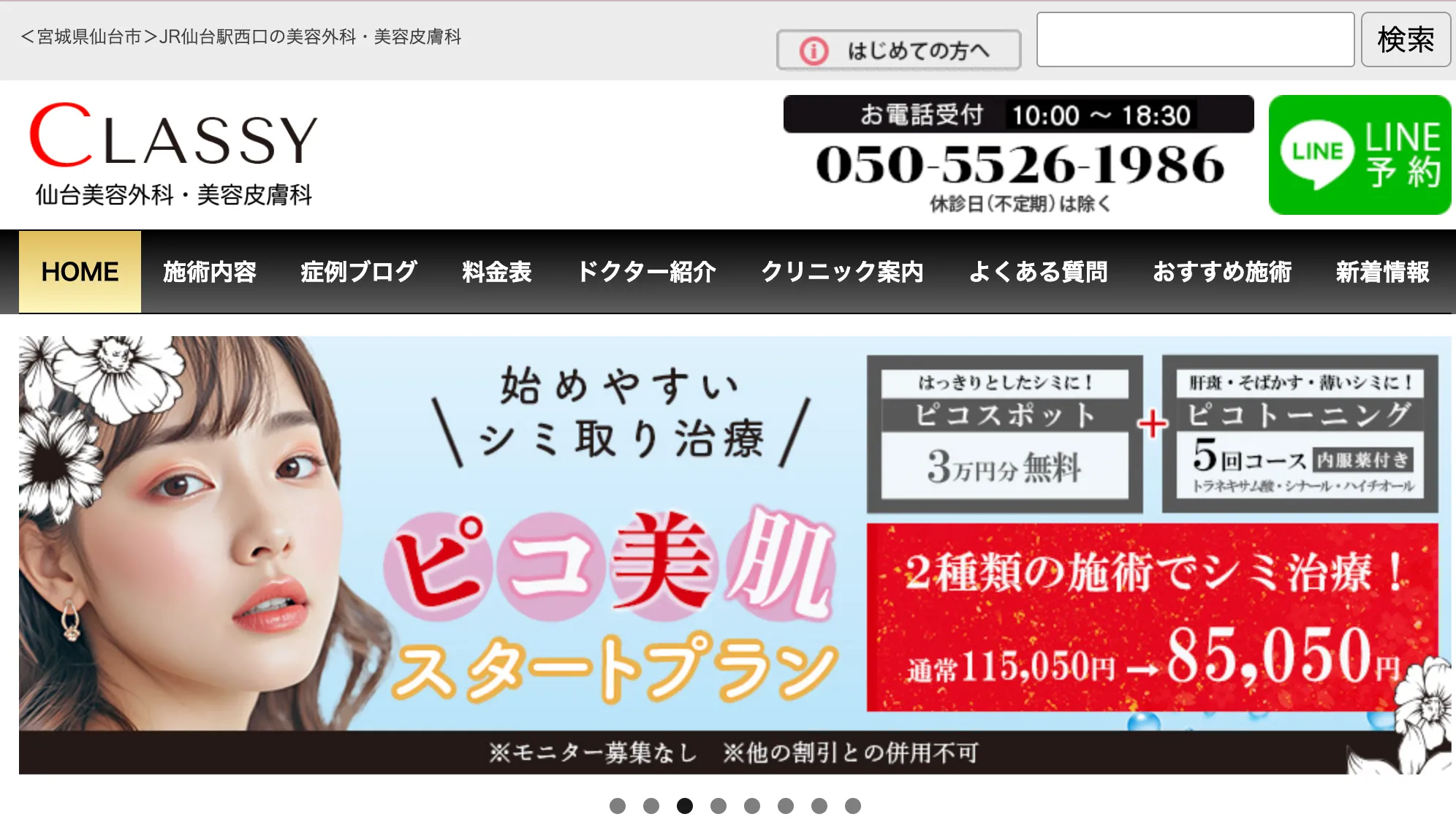 | クリニック | 1院 仙台院:JR仙台駅 徒歩3分 | 1院 仙台院:仙台駅徒歩1分 | 1院 仙台院:仙台徒歩2分 |