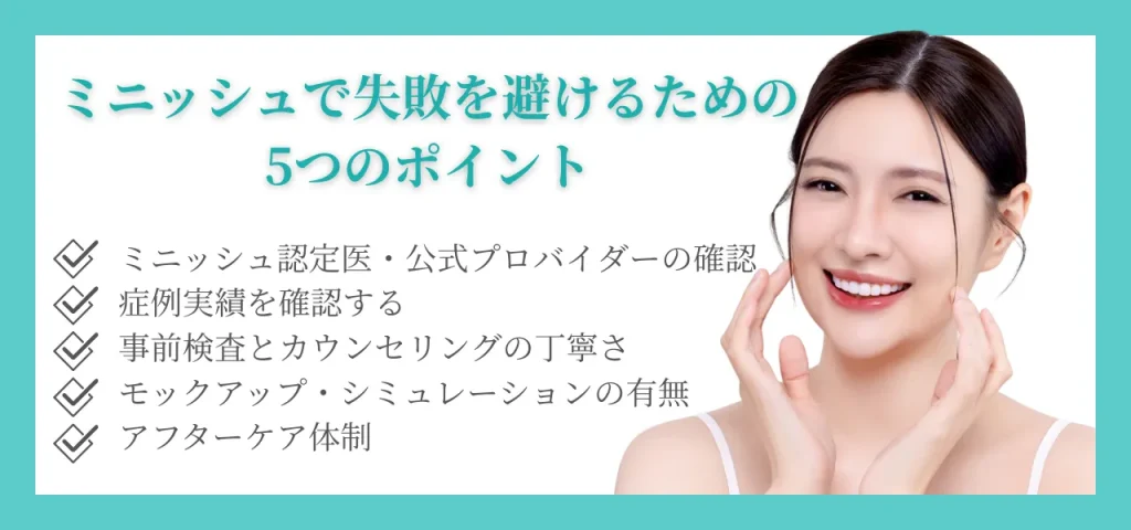 この記事では、ミニッシュのデメリットやリスクをわかりやすく整理し、失敗を防ぐために必要な知識と歯科医師選びのポイントを解説します。