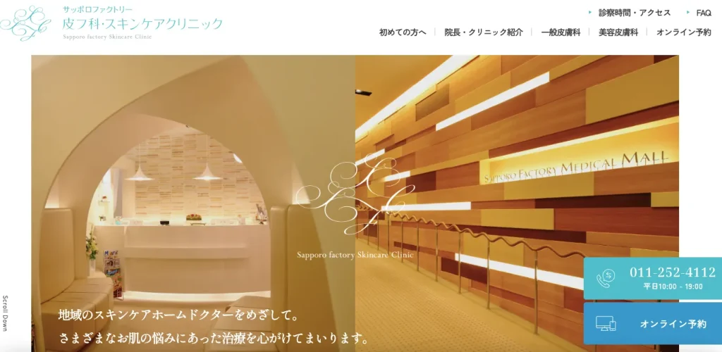 女性医師と女性スタッフで運営され、清潔感のある空間と温かなホスピタリティで支持される「札幌ファクトリー 皮フ科・スキンケアクリニック」。