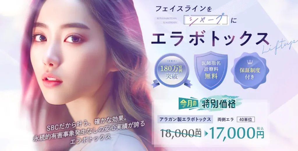 ここでは人気の「エラボトックス」の料金・口コミを紹介します。