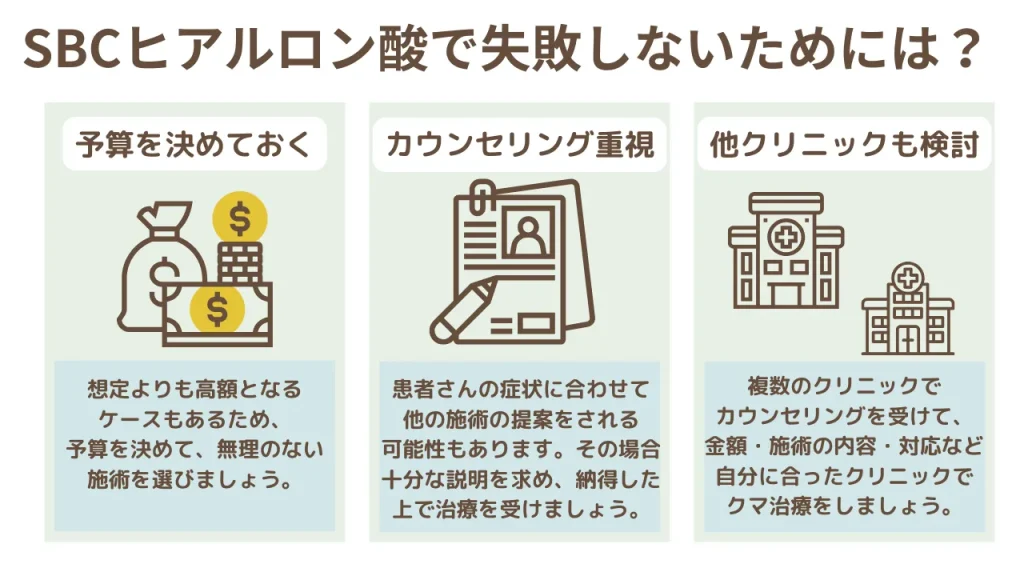 ・予算を決めておく ・カウンセリングで納得のいくまで説明を求める・他クリニックも視野に入れて検討