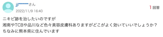 知恵袋では、TCBのニキビ治療に関してどのような投稿がされていますか?