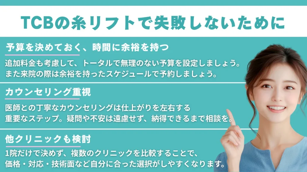 TCB東京中央美容外科の糸リフトで失敗しないための注意点